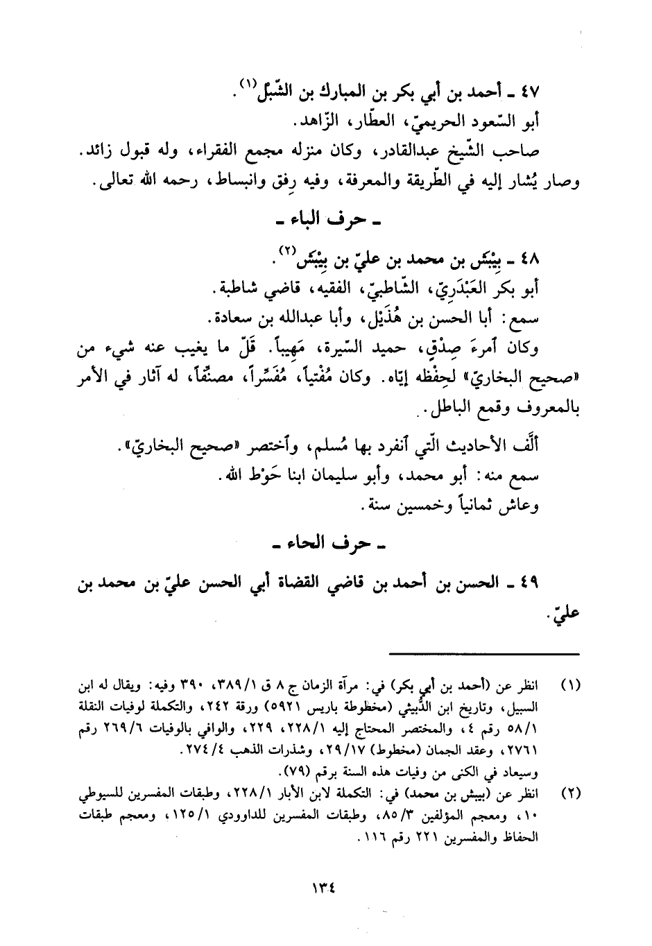 [1] انظر عن (أحمد بن أبي بكر) في: مرآة الزمان ج 8 ق 1/ 389، 390 وفيه: ويقال له ابن السبيل، وتاريخ ابن الدّبيثي (مخطوطة باريس 5921) ورقة 242، والتكملة لوفيات النقلة 1/ 58، رقم 4، والمختصر المحتاج إليه 1/ 228، 229، والوافي بالوفيات 6/ 269 رقم 2761، وعقد الجمان (مخطوط) 17/ 29، وشذرات الذهب 4/ 274.