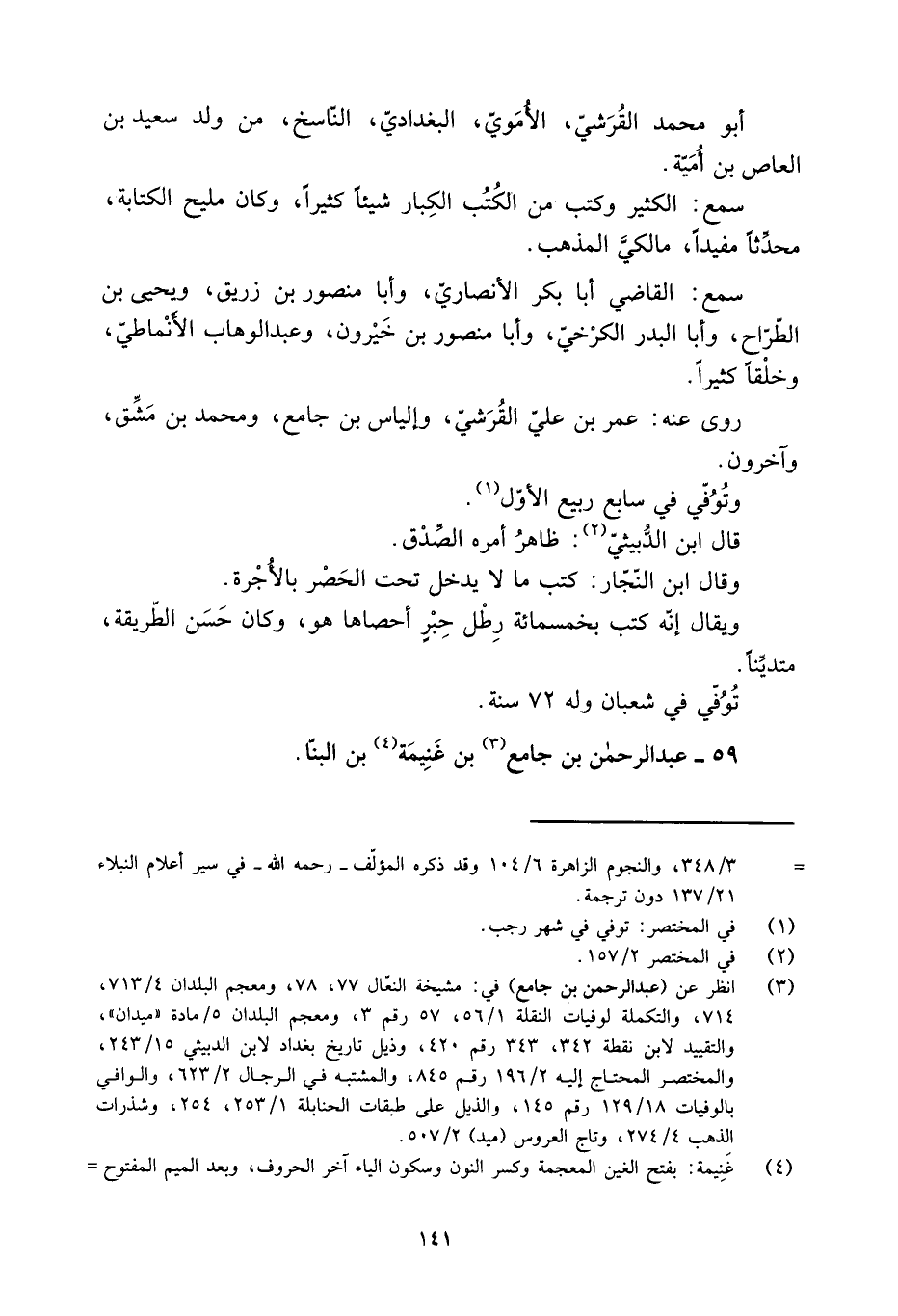 59- عَبْد الرحمن بن جامع [3] بن غنيمة [4] بن البنّاء.