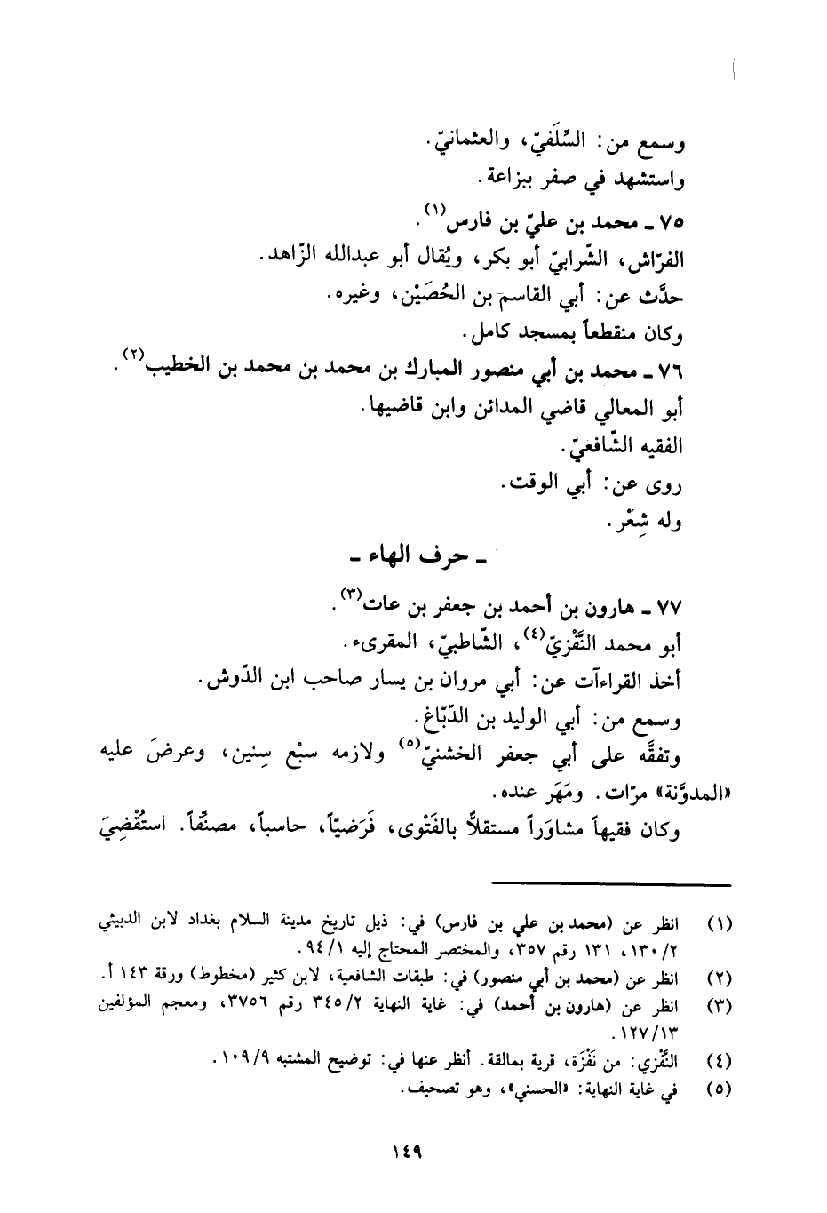 [1] انظر عن (محمد بن علي بن فارس) في: ذيل تاريخ مدينة السلام بغداد لابن الدبيثي 2/ 130، 131، رقم 357، والمختصر المحتاج إليه 1/ 94.