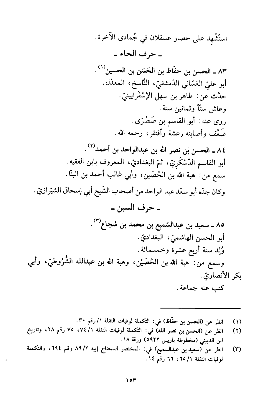 [1] انظر عن (الحسن بن حفّاظ) في: التكملة لوفيات النقلة 1/ رقم 30.