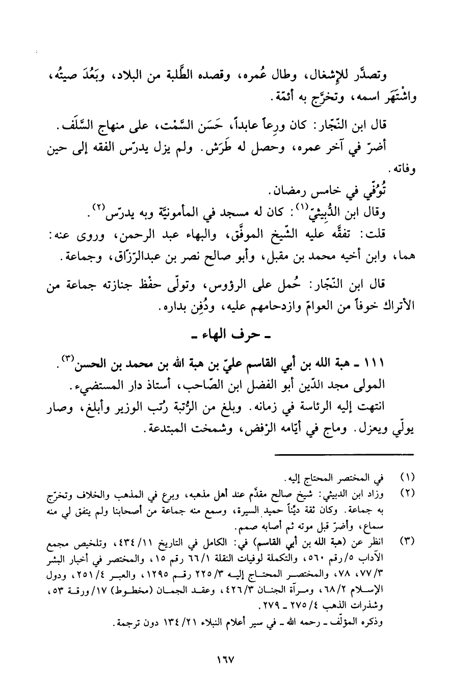 111- هبة الله بْن أَبِي القاسم عَلِيّ بْن هبة اللَّه بْن مُحَمَّد بْن الحَسَن [3] .