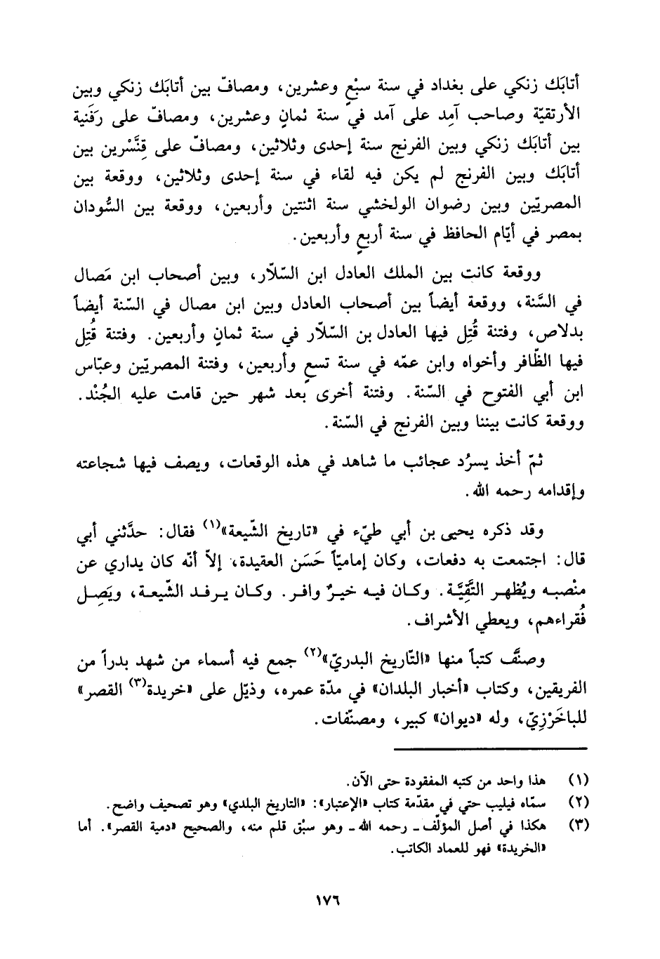 [2] سمّاه فيليب حتى في مقدّمة كتاب «الإعتبار» : «التاريخ البلدي» وهو تصحيف واضح.