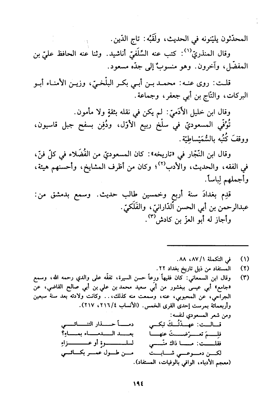(معجم الأدباء، الوافي بالوفيات، المستفاد) .