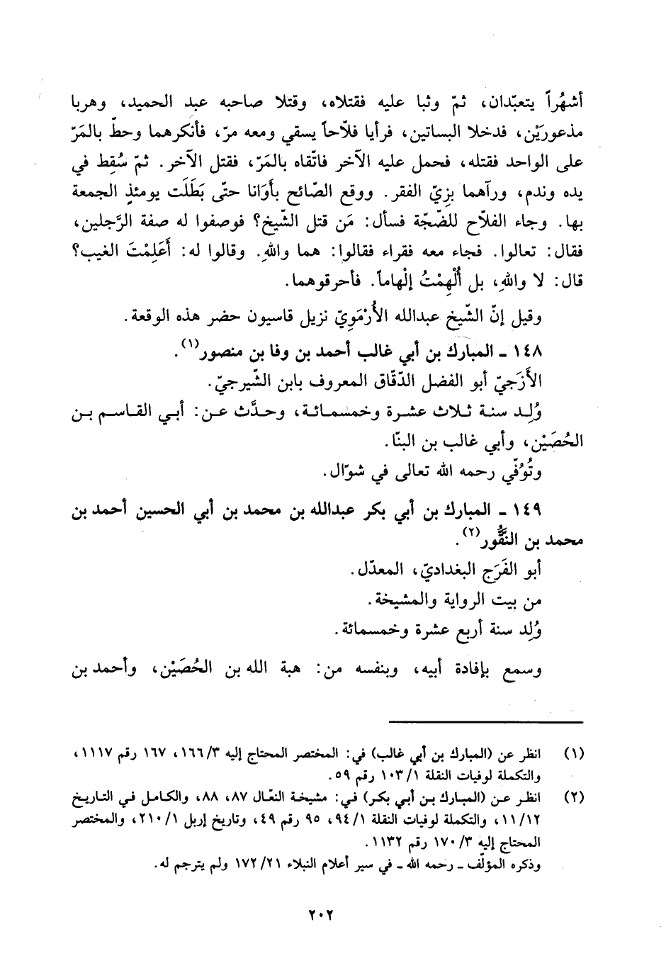 149- الْمُبَارَك بْن أَبِي بَكْر عَبْد الله بْن مُحَمَّد بْن أَبِي الحُسَيْن أحمد بْن محمد بن النَّقُّور [2] .
