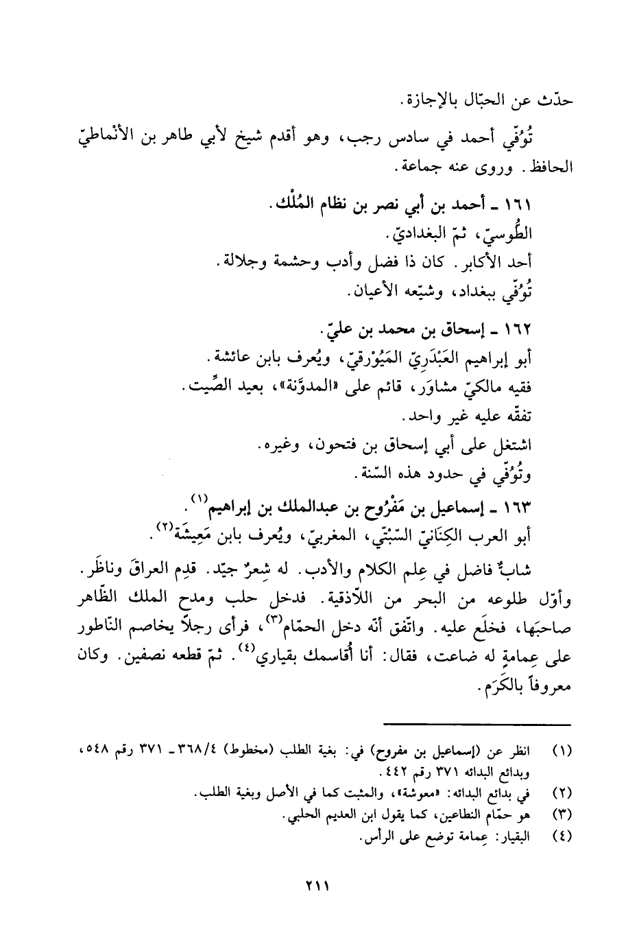 163- إِسْمَاعِيل بْن مَفْرُوح بْن عَبْد الملك بْن إِبْرَاهِيم [1] .