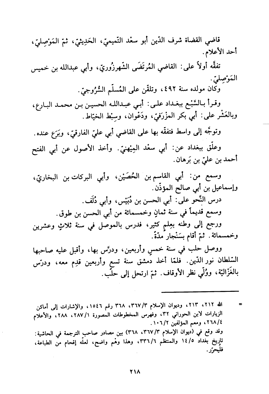 قاضي القضاة شرف الدّين أَبُو سعد التَّمِيمِيّ، الحَدِيثيّ، ثُمَّ الْمَوْصِلِيّ، أحد الأعلام.