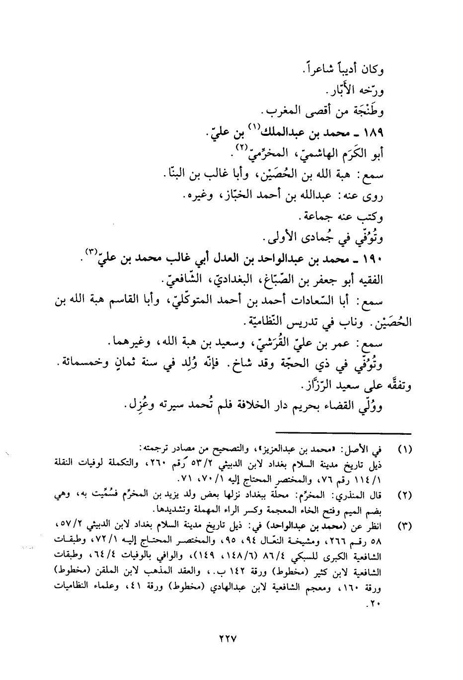 190- مُحَمَّد بْن عَبْد الواحد بْن العدل أَبِي غالب مُحَمَّد بْن عَلِيّ [3] .