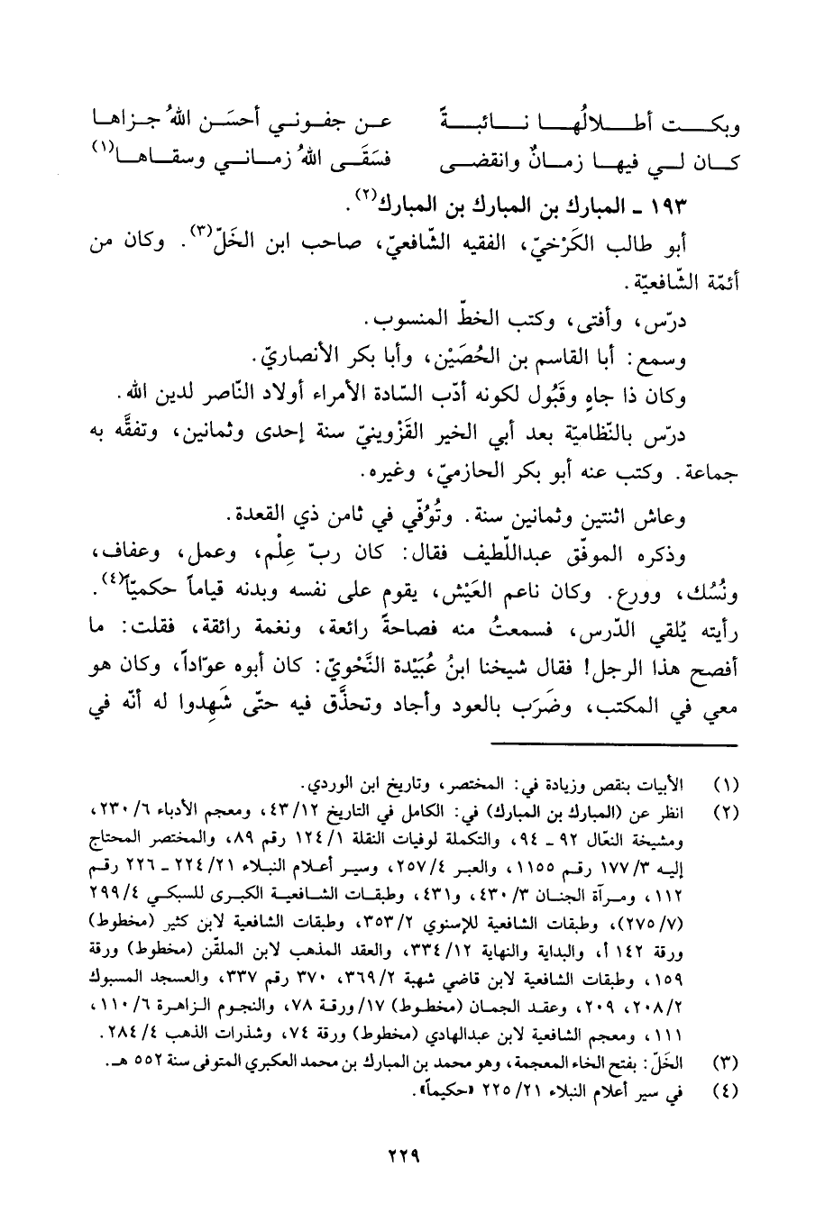 [2] انظر عن (المبارك بن المبارك) في: الكامل في التاريخ 12/ 43، ومعجم الأدباء 6/ 230، ومشيخة النعّال 92- 94، والتكملة لوفيات النقلة 1/ 124 رقم 89، والمختصر المحتاج إليه 3/ 177 رقم 1155، والعبر 4/ 257، وسير أعلام النبلاء 21/ 224- 226 رقم 112، ومرآة الجنان 3/ 430، و 431، وطبقات الشافعية الكبرى للسبكي 4/ 299 (7/ 275) ، وطبقات الشافعية للإسنويّ 2/ 353، وطبقات الشافعية لابن كثير (مخطوط) ورقة 142 أ، والبداية والنهاية 12/ 334، والعقد المذهب لابن الملقّن (مخطوط) ورقة 159، وطبقات الشافعية لابن قاضي شهبة 2/ 369، 370 رقم 337، والعسجد المسبوك 2/ 208، 209، وعقد الجمان (مخطوط) 17/ ورقة 78، والنجوم الزاهرة 6/ 110، 111، ومعجم الشافعية لابن عبد الهادي (مخطوط) ورقة 74، وشذرات الذهب 4/ 284.