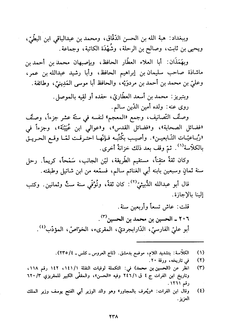 206- الْحُسَيْن بْن مُحَمَّد بْن الْحُسَيْن [3] .