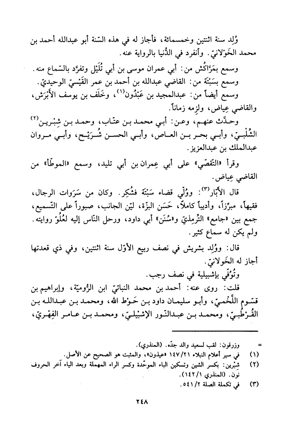 ولد سنة اثنتين وخمسمائة، فأجاز لَهُ فِي هَذِهِ السّنة أَبُو عَبْد اللَّه أَحْمَد بْن مُحَمَّد الْخَوْلانِيّ. وانفرد فِي الدُّنْيَا بالرواية عَنْهُ.