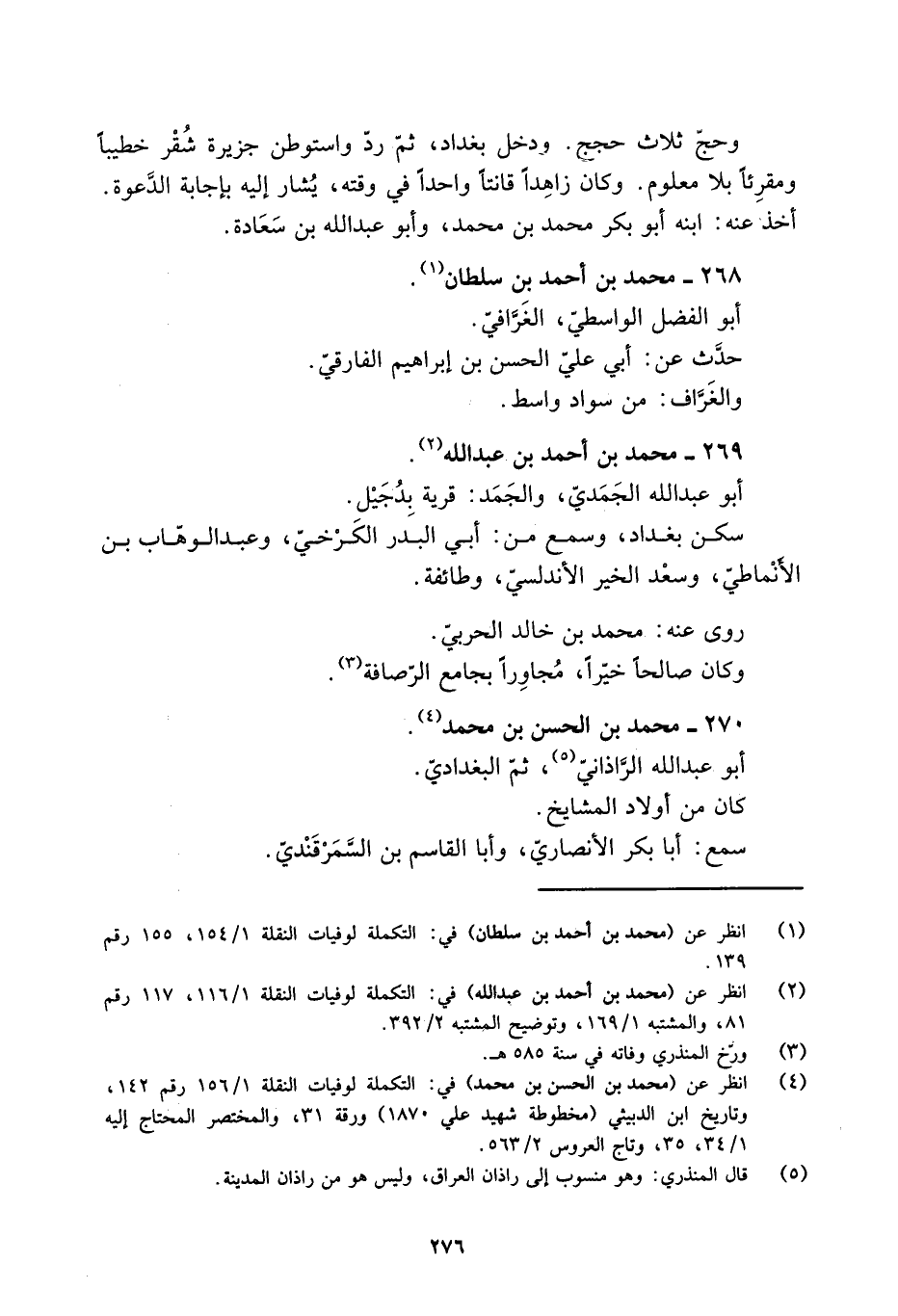 [4] انظر عن (محمد بن الحسن بن محمد) في: التكملة لوفيات النقلة 1/ 156 رقم 142، وتاريخ ابن الدبيثي (مخطوطة شهيد علي 1870) ورقة 31، والمختصر المحتاج إليه 1/ 34، 35، وتاج العروس 2/ 563.