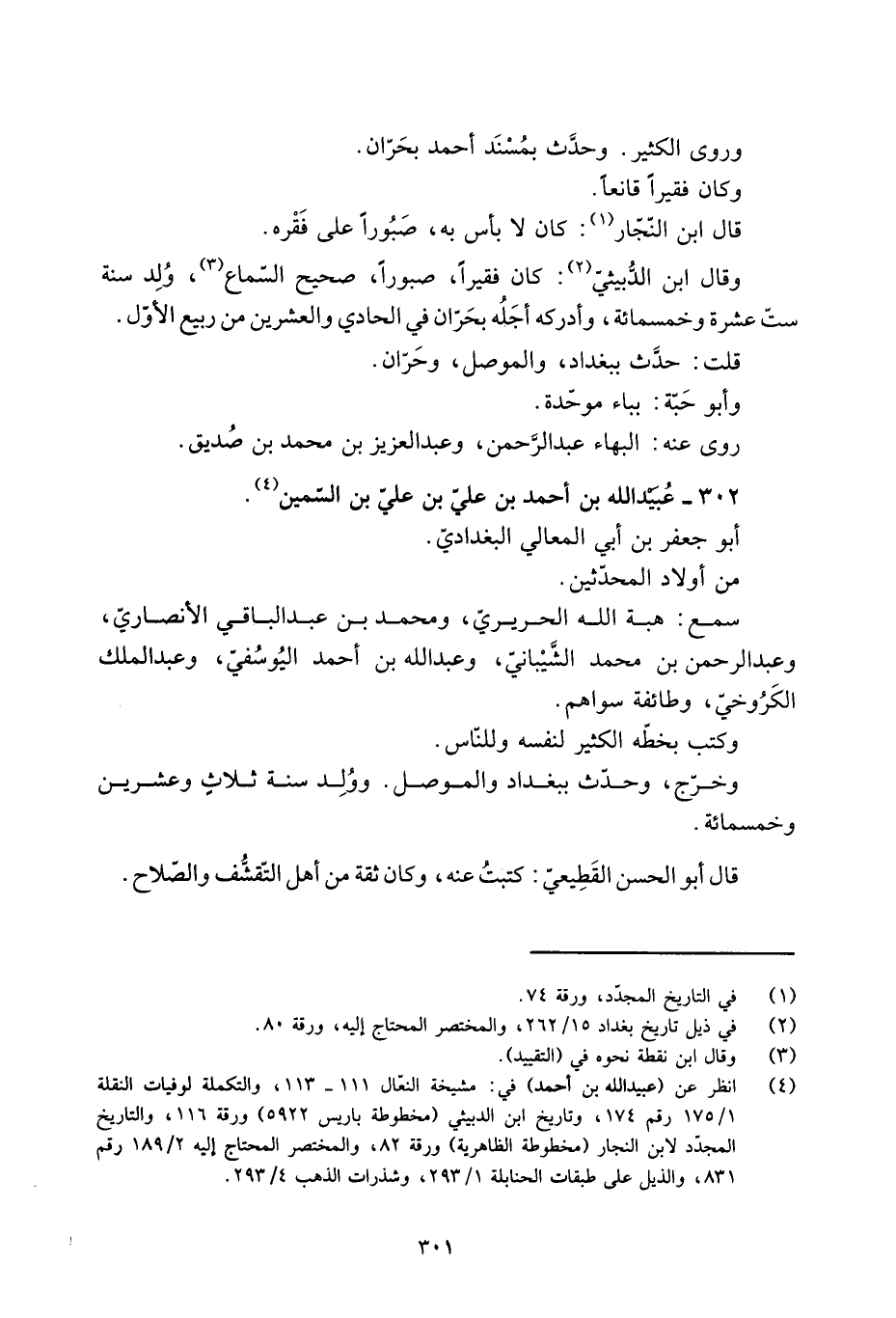 302- عُبَيْد الله بْن أَحْمَد بْن عَلِيّ بْن عَلِيّ بْن السّمين [4] .