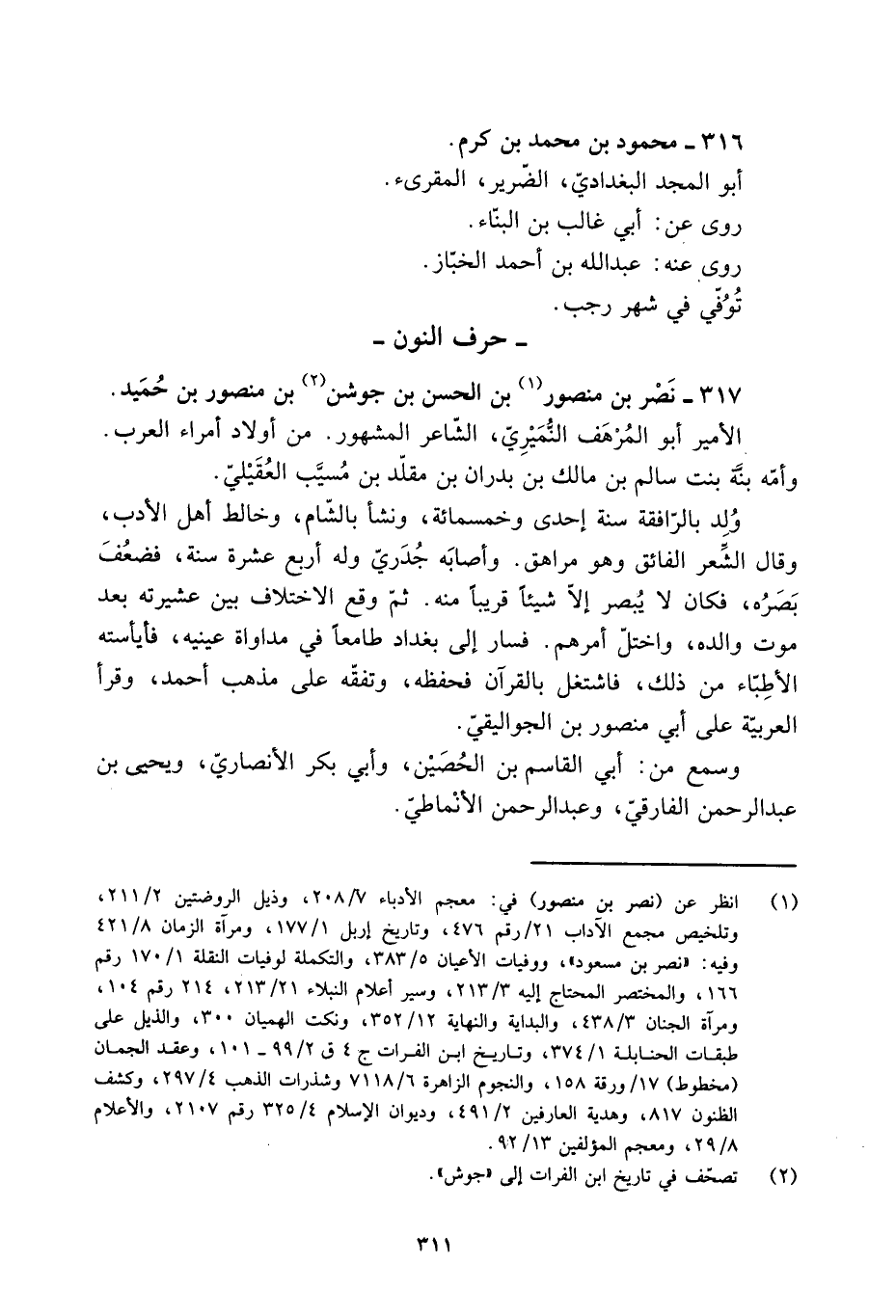 317- نَصْر بْن مَنْصُور [1] بْن الْحَسَن بْن جوشن [2] بْن مَنْصُور بْن حُمَيد.
