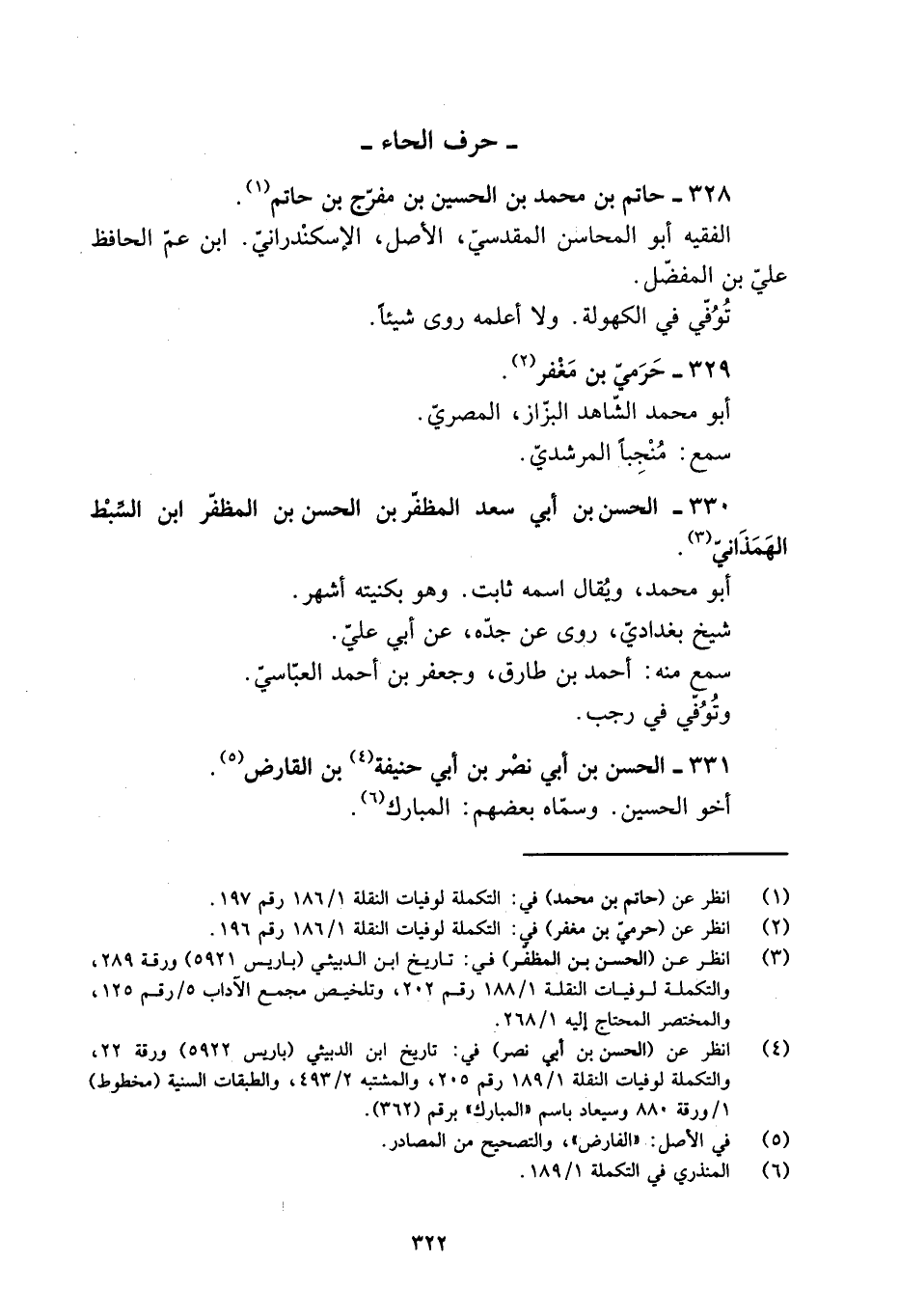 [2] انظر عن (حرميّ بن مغفر) في: التكملة لوفيات النقلة 1/ 186 رقم 196.