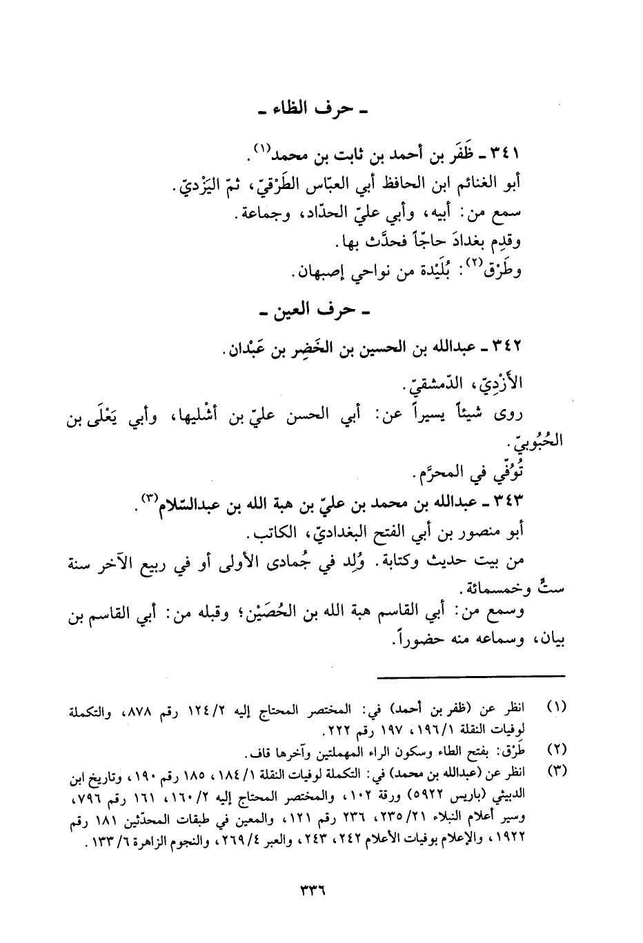 [1] انظر عن (ظفر بن أحمد) في: المختصر المحتاج إليه 2/ 124 رقم 878، والتكملة لوفيات النقلة 1/ 196، 197 رقم 222.