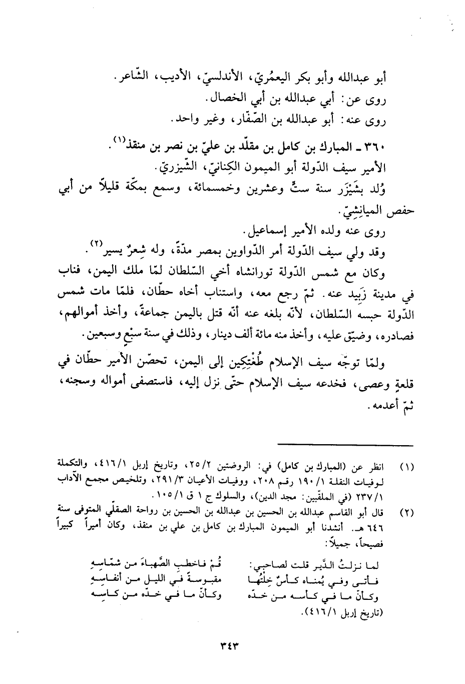 360- الْمُبَارَك بْن كامل بْن مُقَلَّد بْن عَلِيّ بْن نصر بْن منقذ [1] .