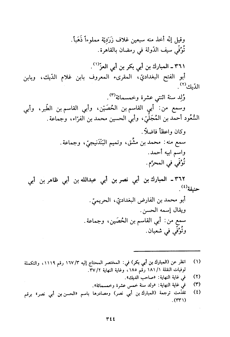 [4] تقدّمت ترجمة (المبارك بن أبي نصر) ومصادرها باسم «الحسن بن أبي نصر» برقم (331) .