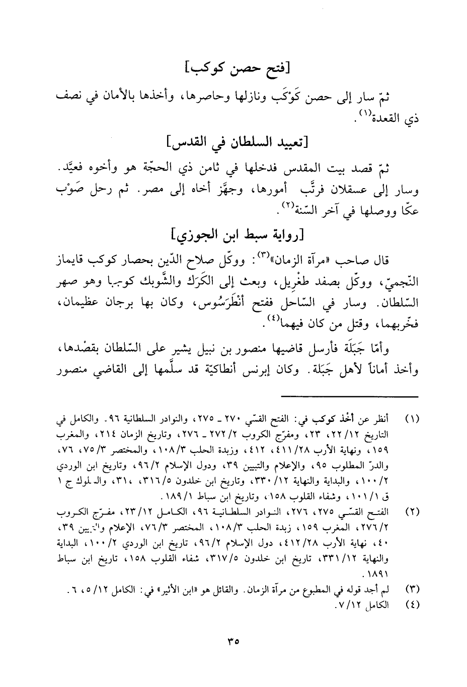 [1] انظر عن أخذ كوكب في: الفتح القسّي 270- 275، والنوادر السلطانية 96. والكامل في التاريخ 12/ 22، 23، ومفرّج الكروب 2/ 272- 276، وتاريخ الزمان 214، والمغرب 159، ونهاية الأرب 28/ 411، 412، وزبدة الحلب 3/ 108، والمختصر 3/ 75، 76، والدرّ المطلوب 95، والإعلام والتبيين 39، ودول الإسلام 2/ 96، وتاريخ ابن الوردي 2/ 100، والبداية والنهاية 12/ 330، وتاريخ ابن خلدون 5/ 316، 31، والسلوك ج 1 ق 1/ 101، وشفاء القلوب 158، وتاريخ ابن سباط 1/ 189.