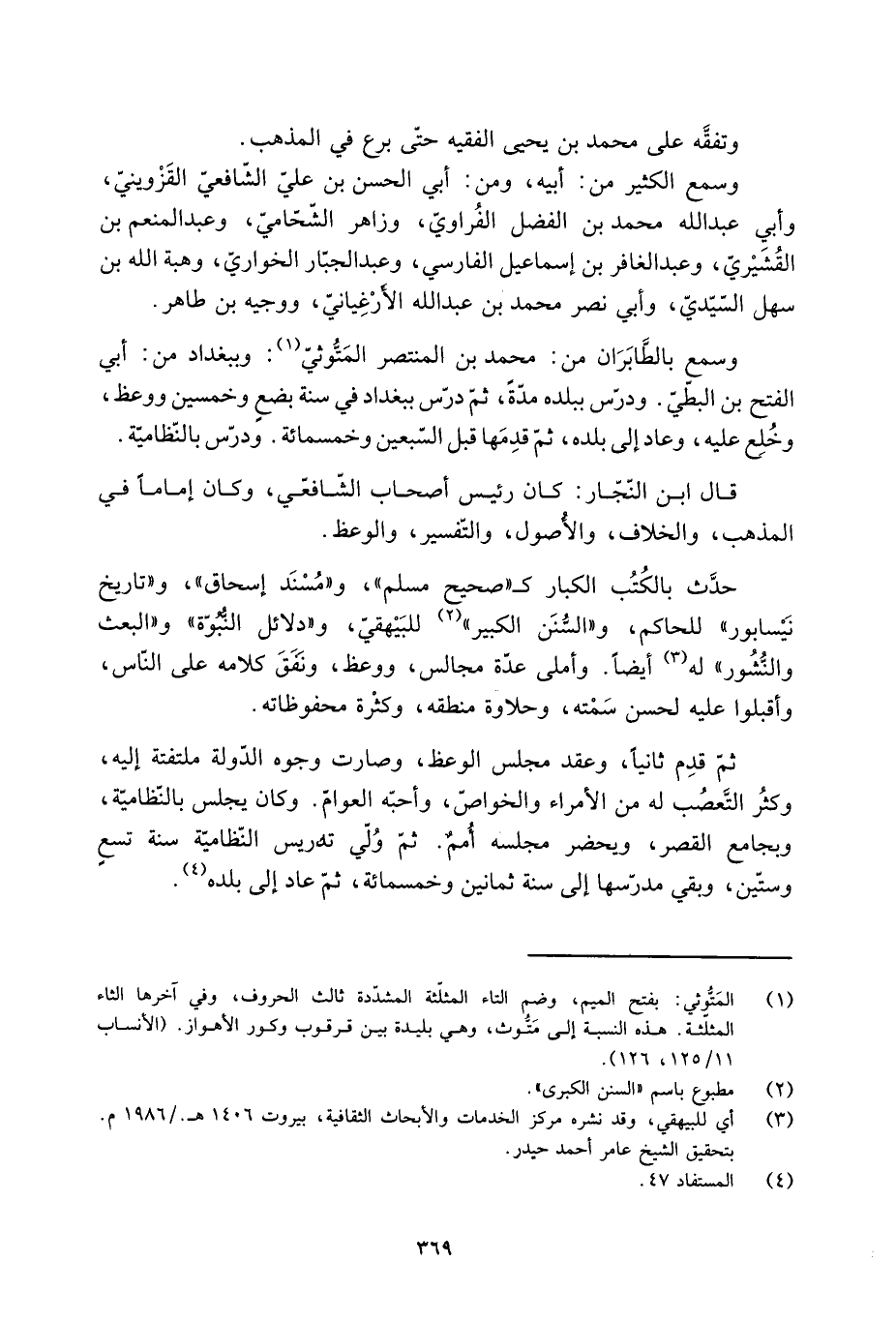 [3] أي للبيهقي، وقد نشره مركز الخدمات والأبحاث الثقافية، بيروت 1406 هـ. / 1986 م.