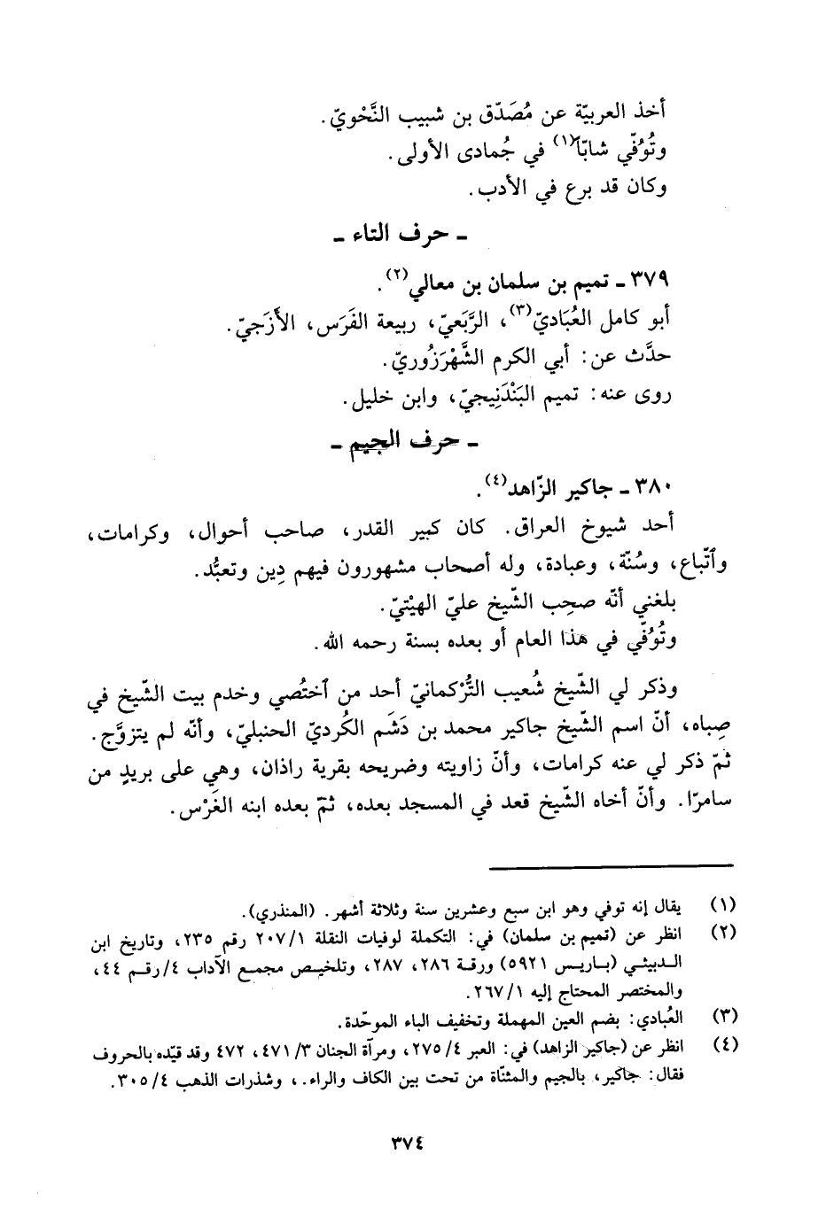 [4] انظر عن (جاكير الزاهد) في: العبر 4/ 275، ومرآة الجنان 3/ 471، 472 وقد قيّده بالحروف فقال: جاكير، بالجيم والمثنّاة من تحت بين الكاف والراء.، وشذرات الذهب 4/ 305.