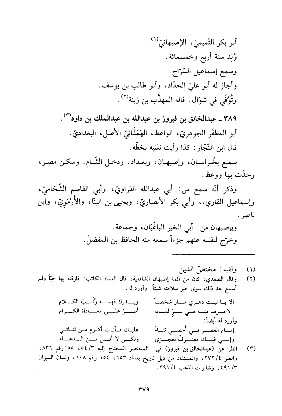 [3] انظر عن (عبد الخالق بن فيروز) في: المختصر المحتاج إليه 3/ 54، 55 رقم 836، والعبر 4/ 272، والمستفاد من ذيل تاريخ بغداد 153، 154 رقم 108، ولسان الميزان 3/ 491، وشذرات الذهب 4/ 291.