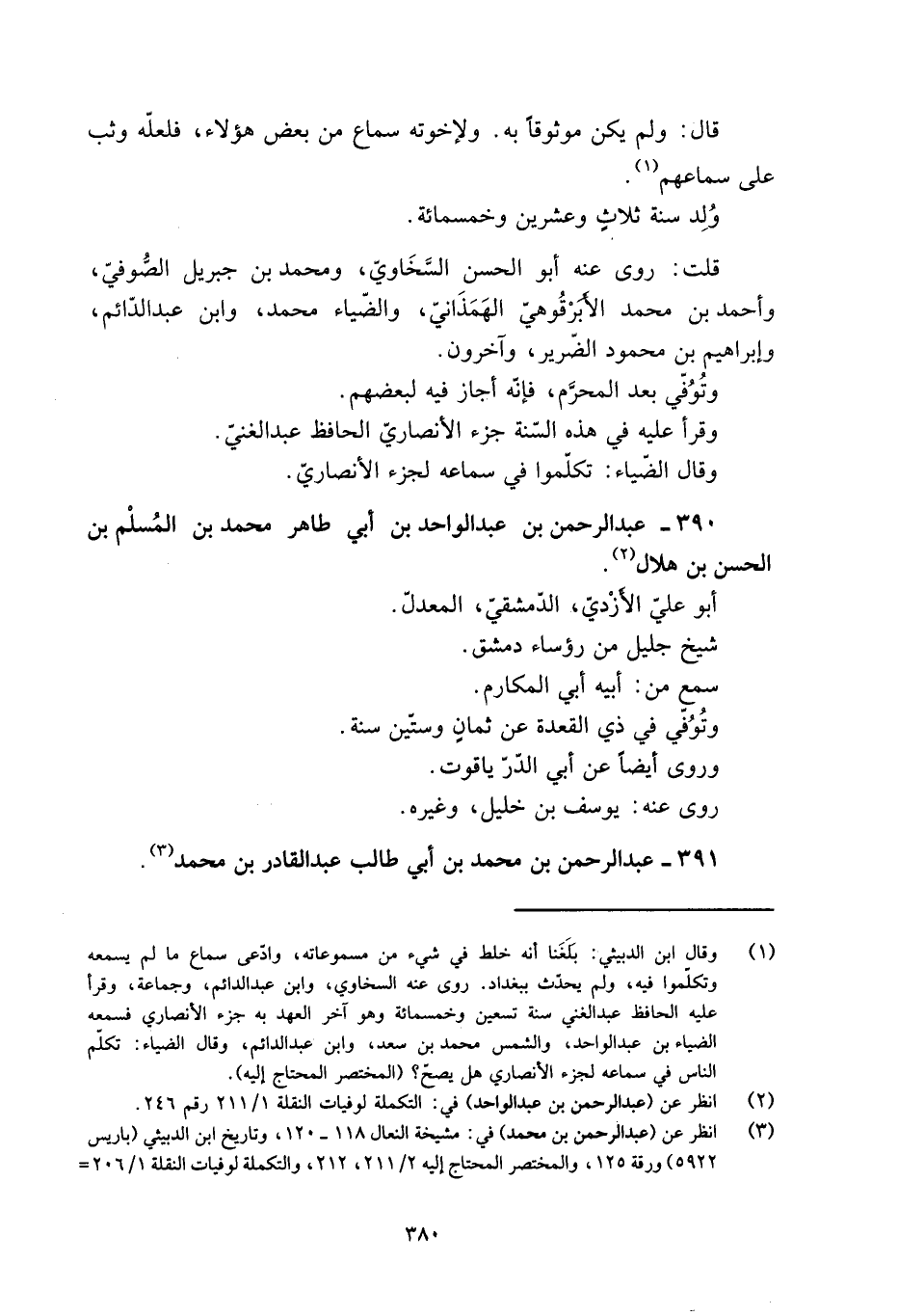 391- عَبْد الرَّحْمَن بْن مُحَمَّد بْن أَبِي طالب عبد القادر بن محمد [3] .