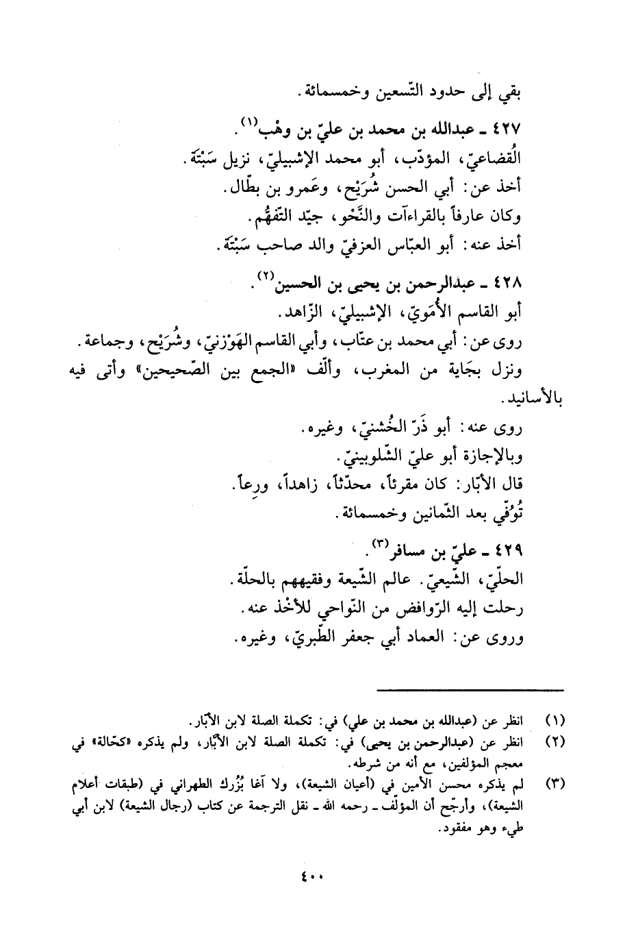 [2] انظر عن (عبد الرحمن بن يحيى) في: تكملة الصلة لابن الأبّار، ولم يذكره «كحّالة» في معجم المؤلفين، مع أنه من شرطه.