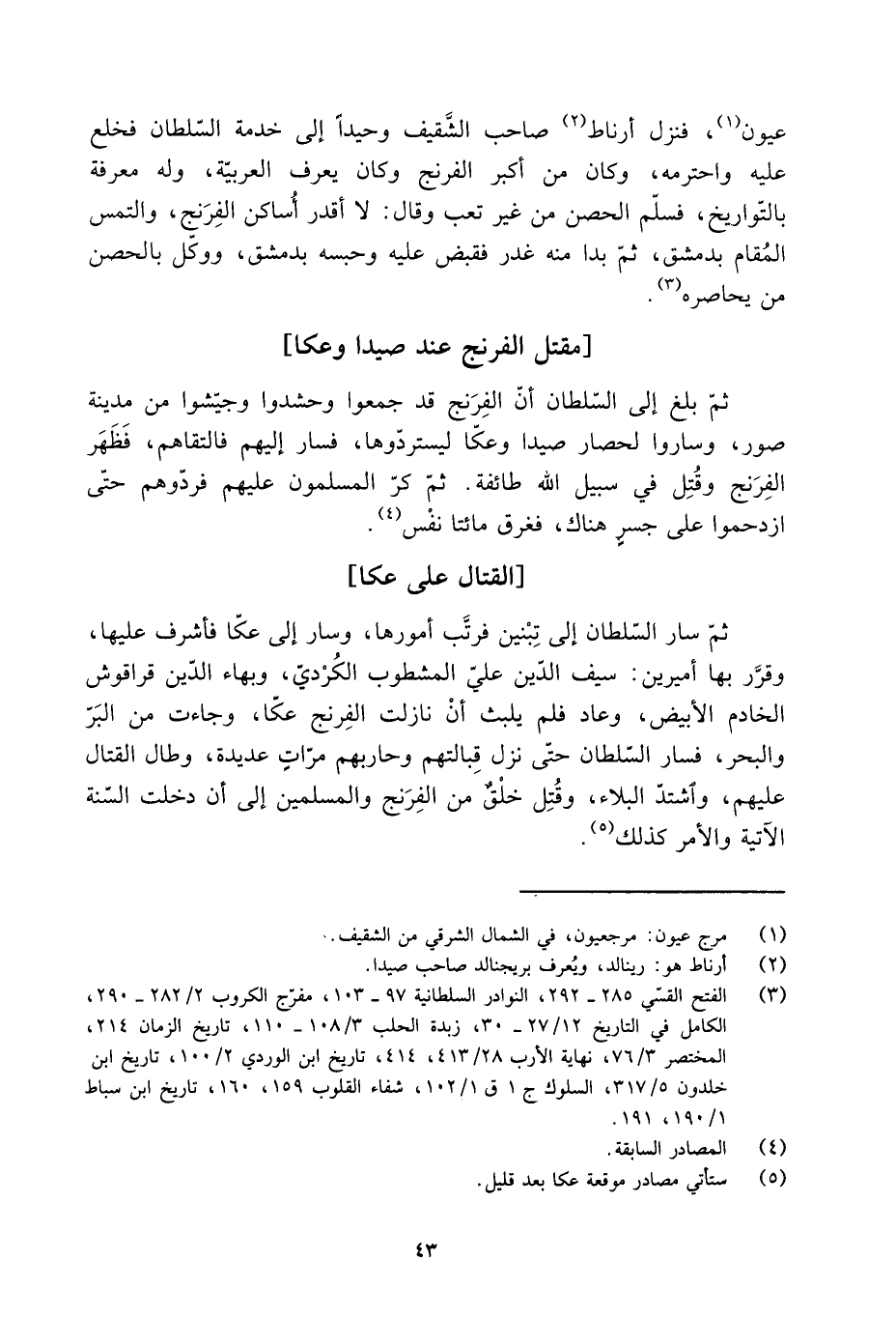 [2] أرناط هو: رينالد، ويعرف بريجنالد صاحب صيدا.