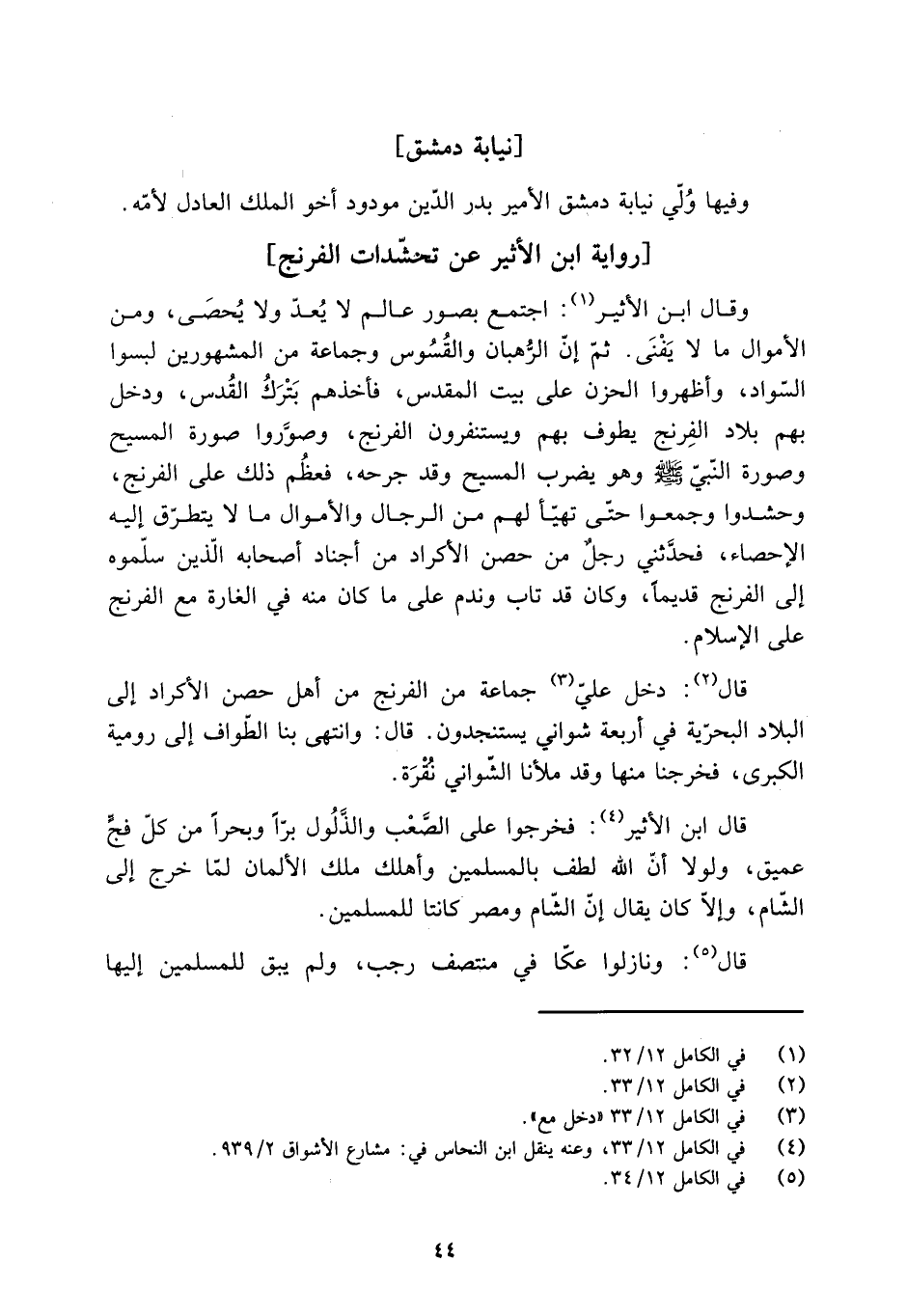 [4] في الكامل 12/ 33، وعنه ينقل ابن النحاس في: مشارع الأشواق 2/ 939.