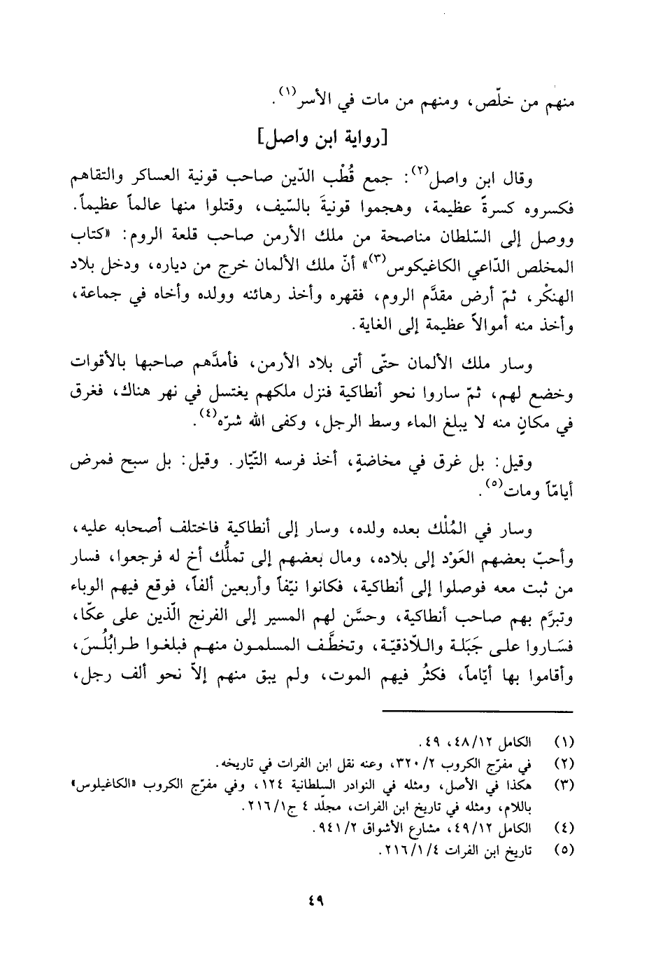 [2] في مفرّج الكروب 2/ 320، وعنه نقل ابن الفرات في تاريخه.