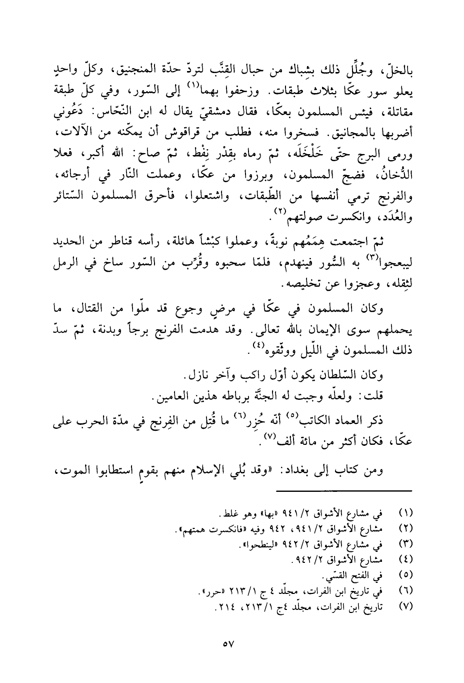ذكر العماد الكاتب [5] أَنَّهُ حُزِر [6] ما قُتِلَ منَ الفِرَنج فِي مدّة الحرب عَلَى عكّا، فكان أكثر من مائة ألف [7] .