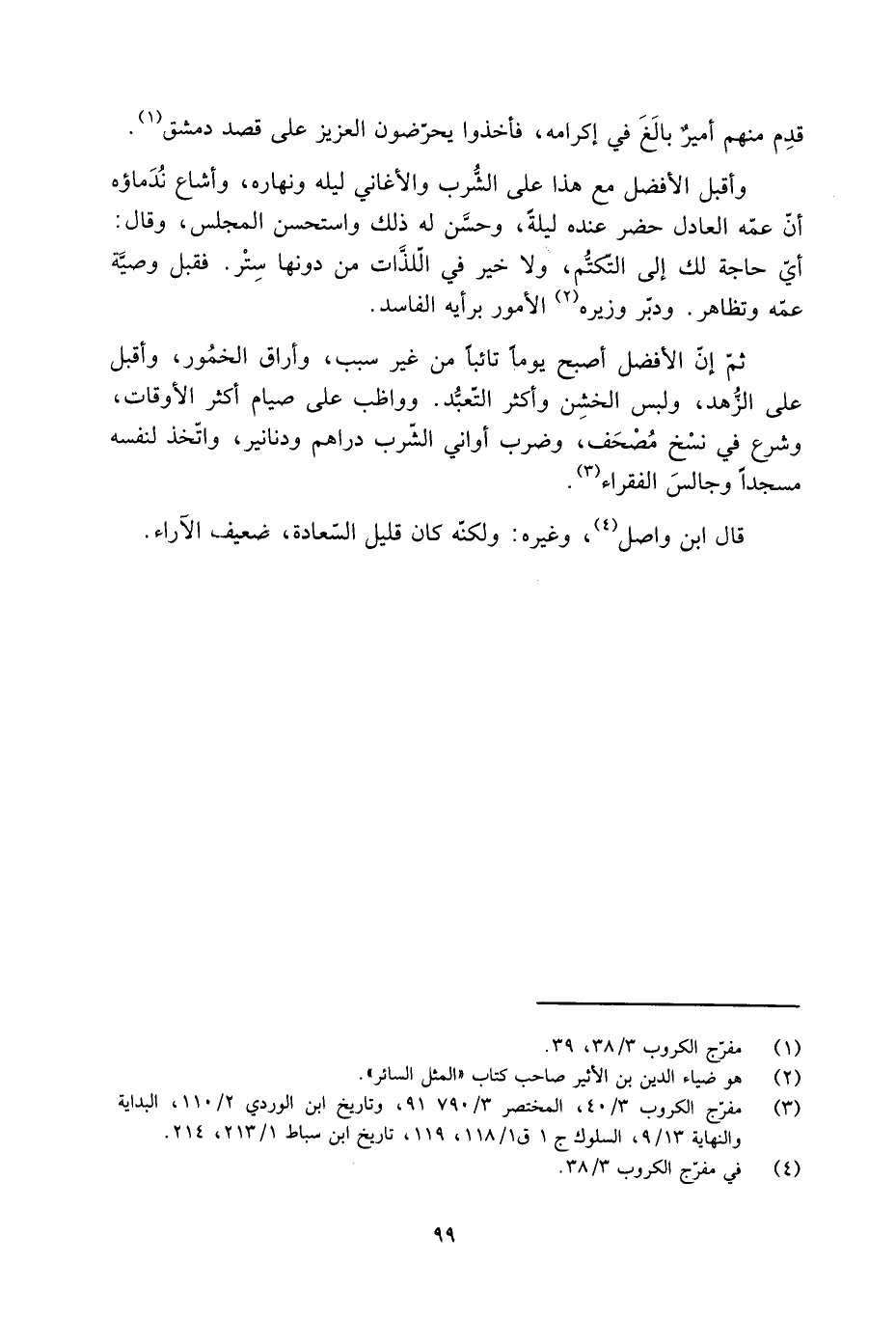 قَالَ ابن واصل [4] ، وغيره: ولكنّه كان قليل السّعادة، ضعيف الآراء.