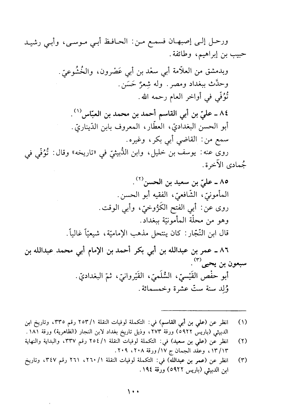 [1] انظر عن (علي بن أبي القاسم) في: التكملة لوفيات النقلة 1/ 253 رقم 335، وتاريخ ابن الدبيثي (باريس 5922) ورقة 273، وذيل تاريخ بغداد لابن النجار (الظاهرية) ورقة 181.