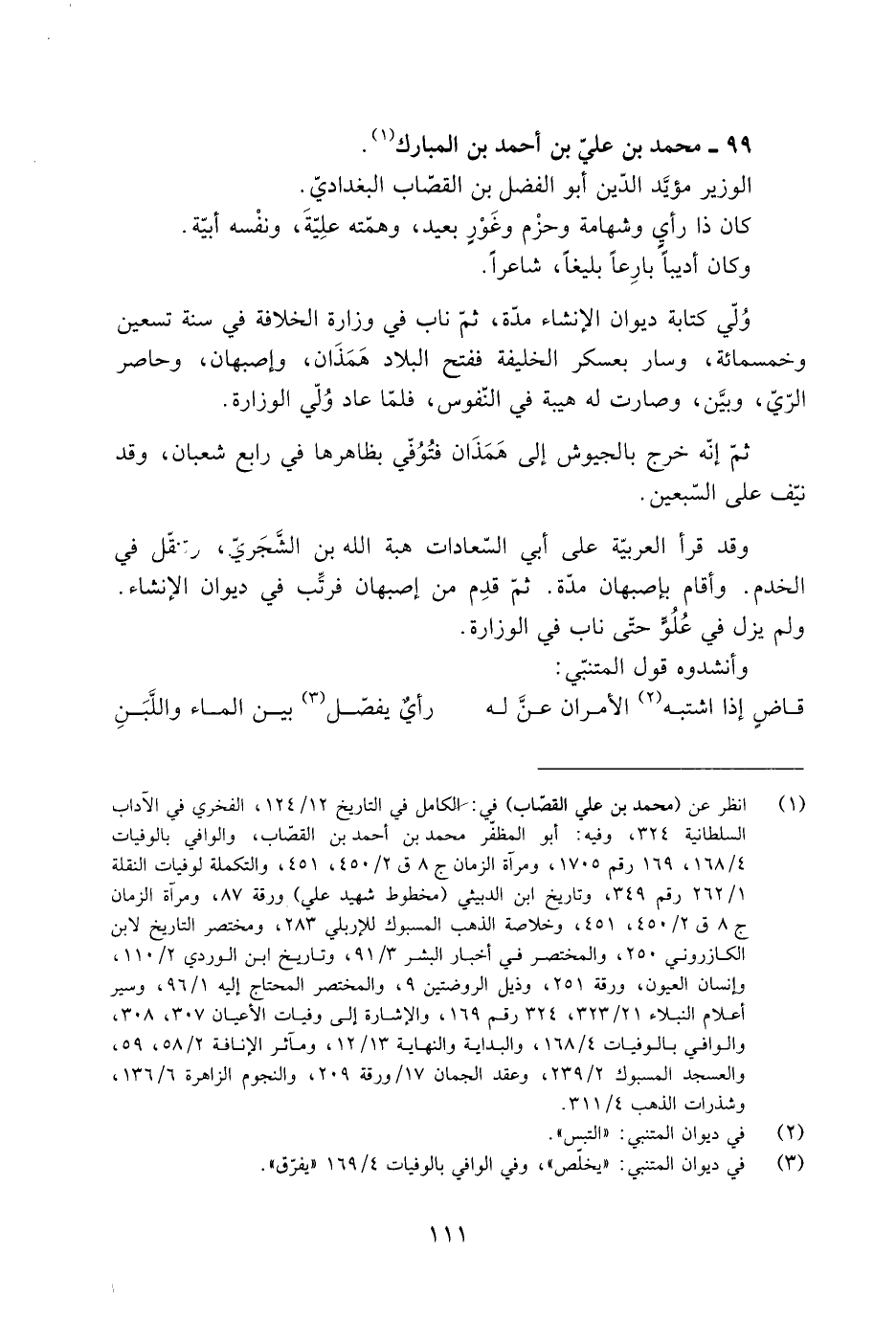 الوزير مؤيَّد الدّين أبو الفضل بْن القصّاب الْبَغْدَادِيّ.