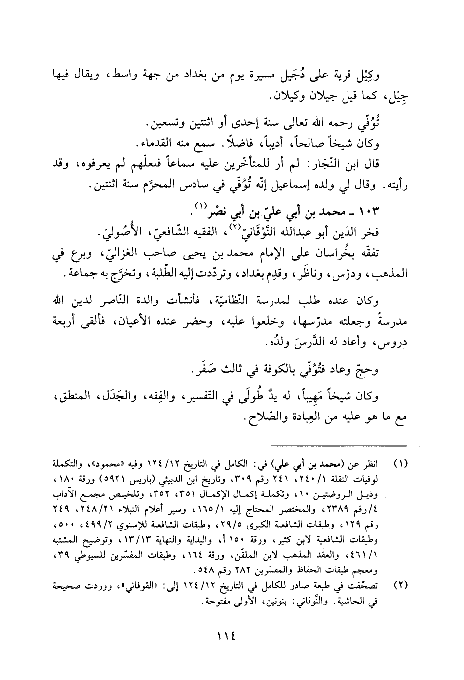 [1] انظر عن (محمد بن أبي علي) في: الكامل في التاريخ 12/ 124 وفيه «محمود» ، والتكملة لوفيات النقلة 1/ 240، 241 رقم 309، وتاريخ ابن الدبيثي (باريس 5921) ورقة 180، وذيل الروضتين 10، وتكملة إكمال الإكمال 351، 352، وتلخيص مجمع الآداب 4/ رقم 2389، والمختصر المحتاج إليه 1/ 165، وسير أعلام النبلاء 21/ 248، 249 رقم 129، وطبقات الشافعية الكبرى 5/ 29، وطبقات الشافعية للإسنويّ 2/ 499، 500، وطبقات الشافعية لابن كثير، ورقة 150 أ، والبداية والنهاية 13/ 13، وتوضيح المشتبه 1/ 461، والعقد المذهب لابن الملقّن، ورقة 164، وطبقات المفسّرين للسيوطي 39، ومعجم طبقات الحفاظ والمفسّرين 282 رقم 548.