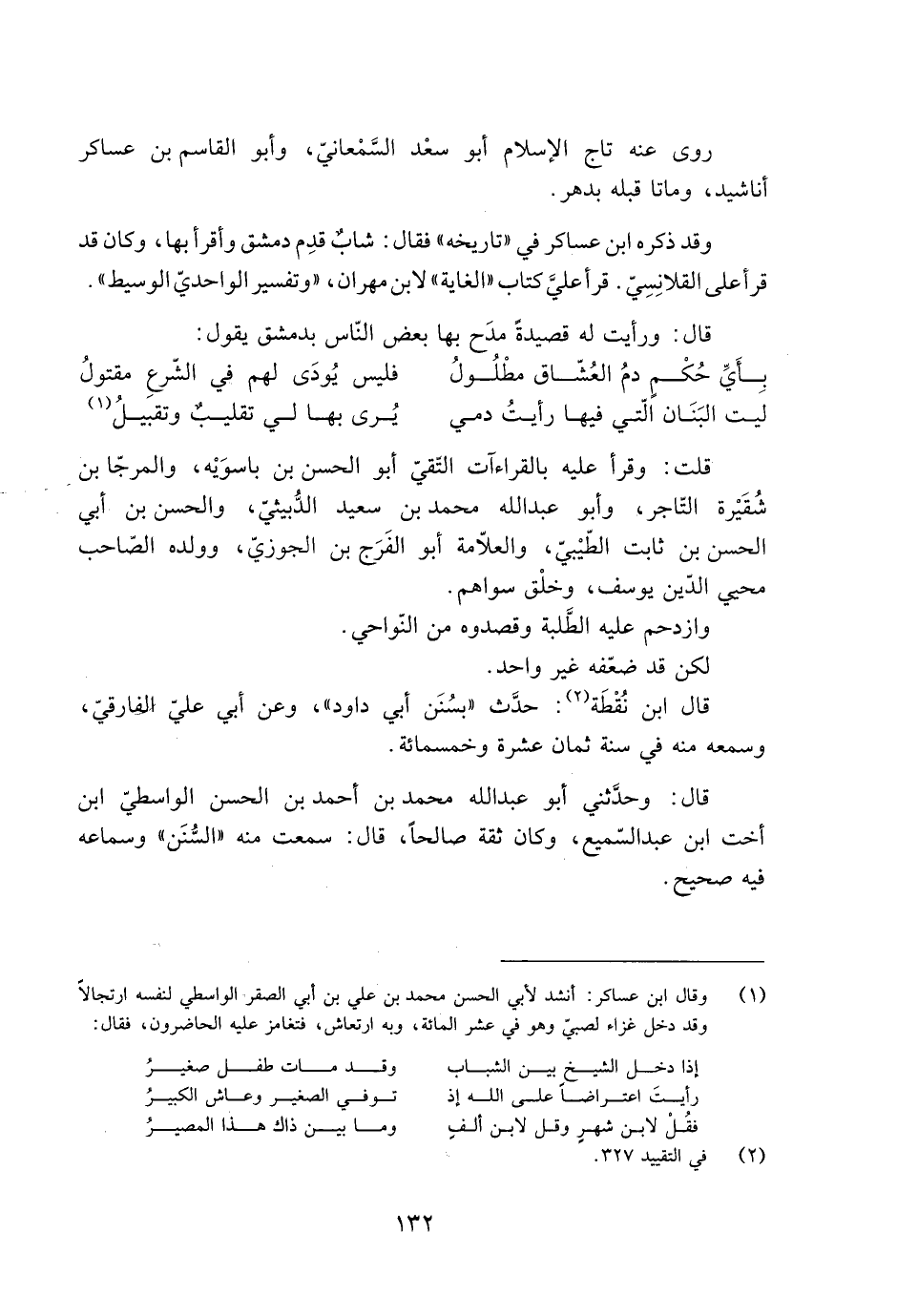 قال: ورأيت له قصيدة مدَح بها بعض النّاس بدمشق يقول: