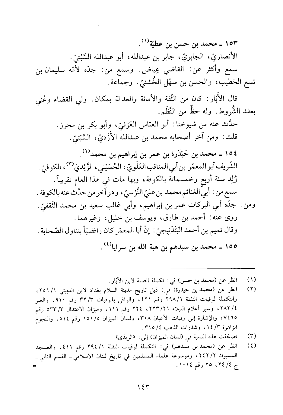 [4] انظر عن (محمد بن سيدهم) في: التكملة لوفيات النقلة 1/ 294 رقم 411، والعسجد المسبوك 2/ 242، وموسوعة علماء المسلمين في تاريخ لبنان الإسلامي- القسم الثاني- ج 4/ 24، 25 رقم 1014.