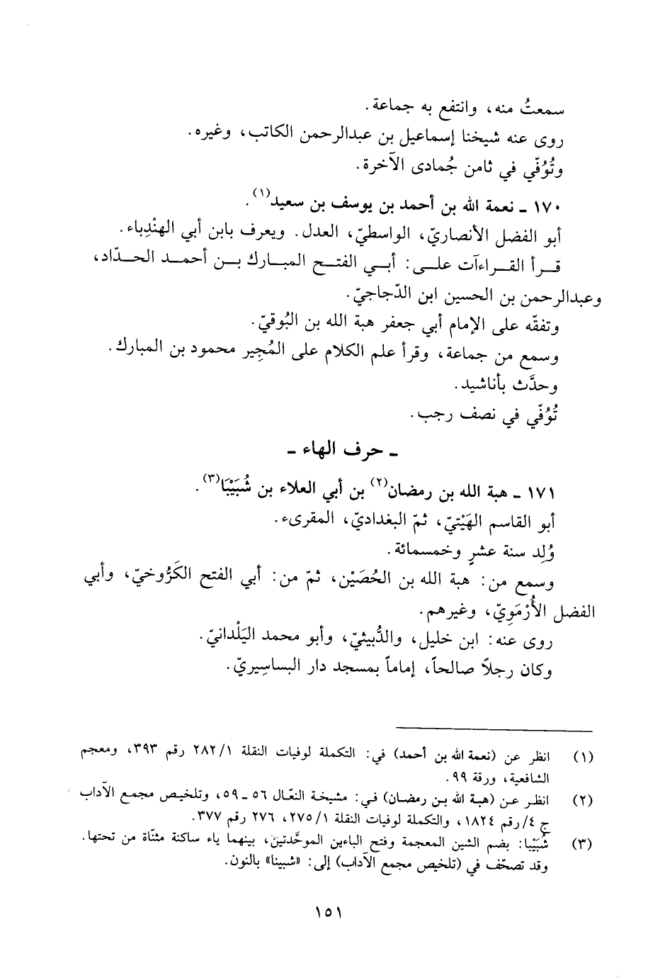 [1] انظر عن (نعمة الله بن أحمد) في: التكملة لوفيات النقلة 1/ 282 رقم 393، ومعجم الشافعية، ورقة 99.