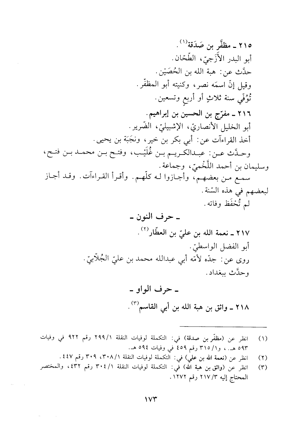 [1] انظر عن (مظفّر بن صدقة) في: التكملة لوفيات النقلة 1/ 299 رقم 922 في وفيات 593 هـ.، و 1/ 315 رقم 459 في وفيات 594 هـ.