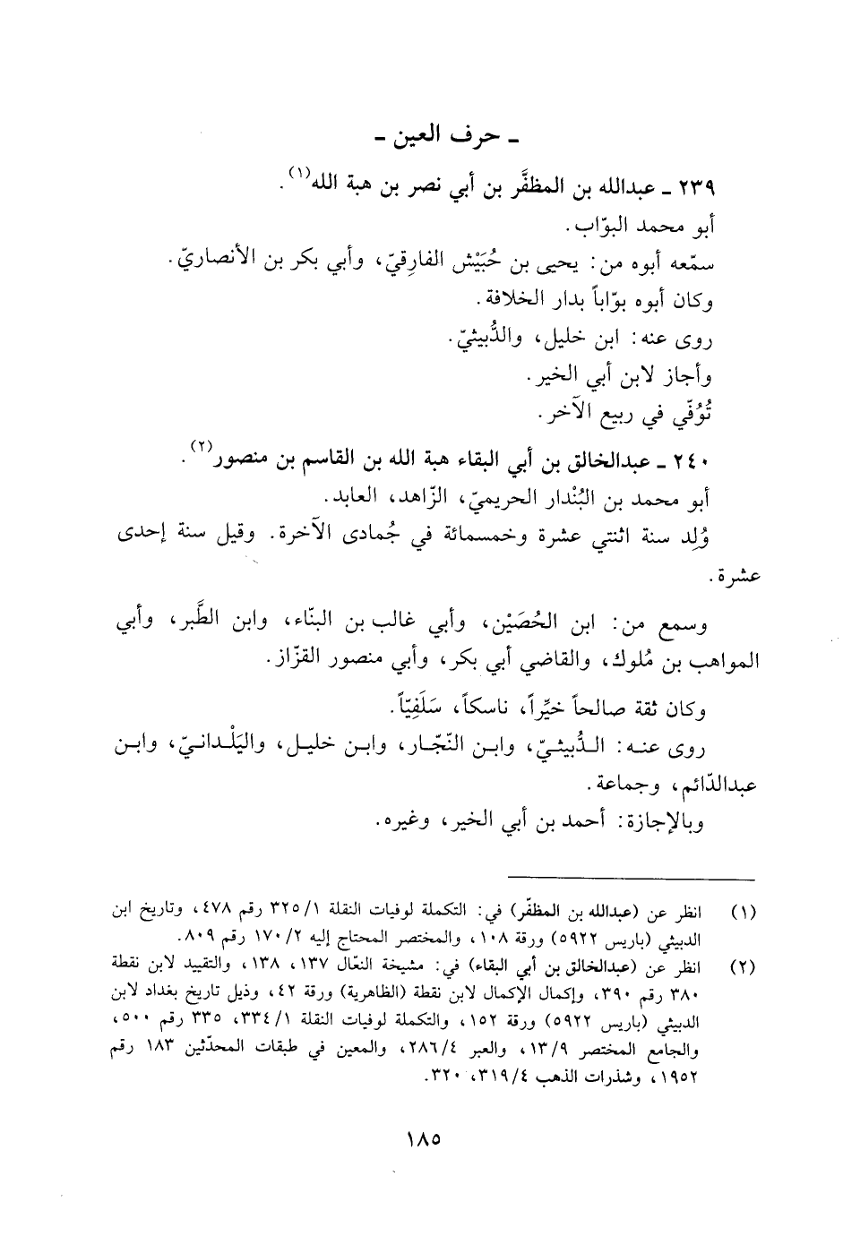 240- عَبْد الخالق بْن أَبِي البقاء هبة اللَّه بْن القاسم بْن مَنْصُور [2] .
