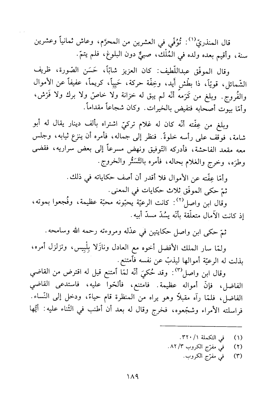 ثمّ حكى ابن واصل حكايتين فِي عدْله ومروءته رحمه اللَّه وسامحه.