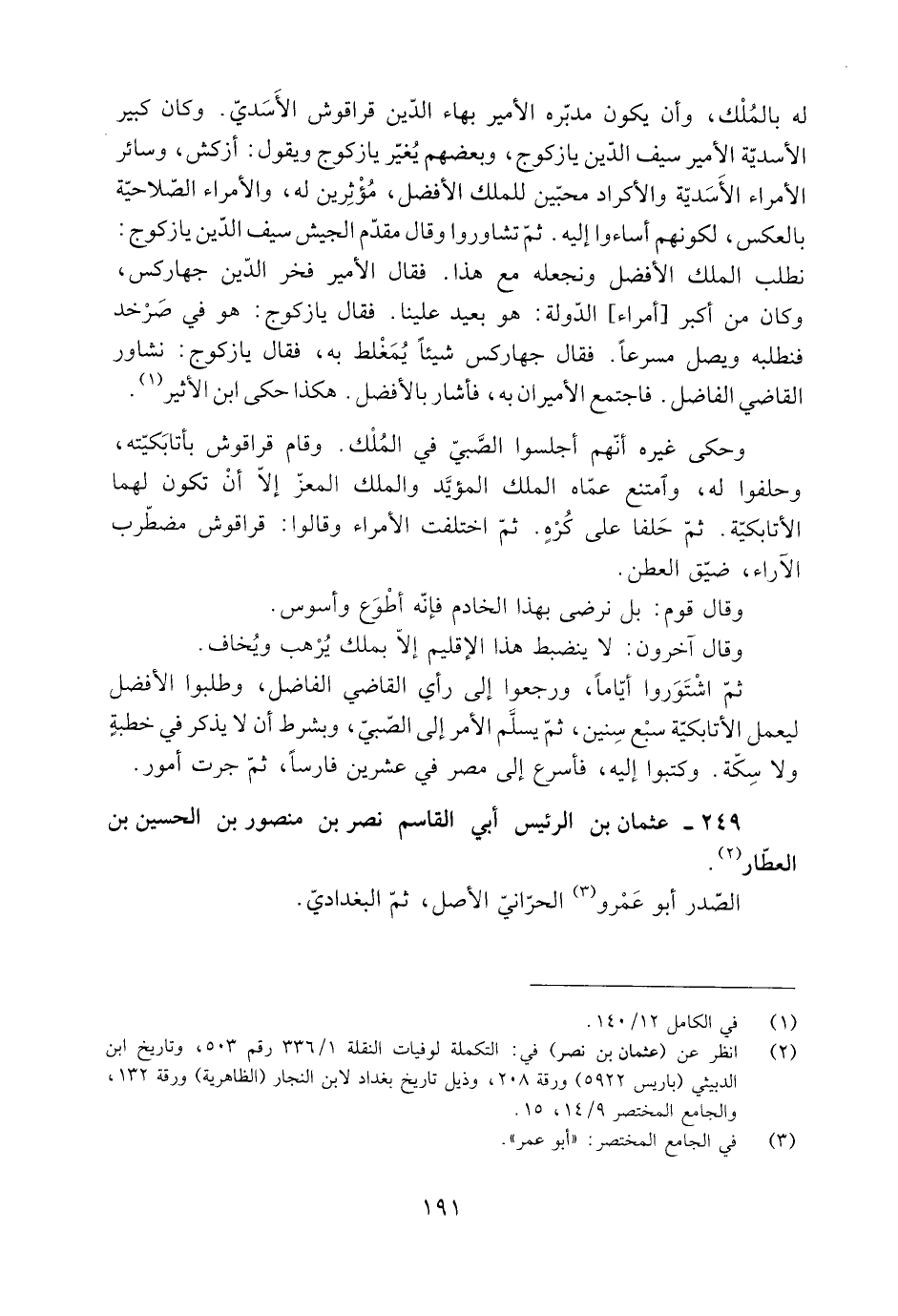 [2] انظر عن (عثمان بن نصر) في: التكملة لوفيات النقلة 1/ 336 رقم 503، وتاريخ ابن الدبيثي (باريس 5922) ورقة 208، وذيل تاريخ بغداد لابن النجار (الظاهرية) ورقة 132، والجامع المختصر 9/ 14، 15.