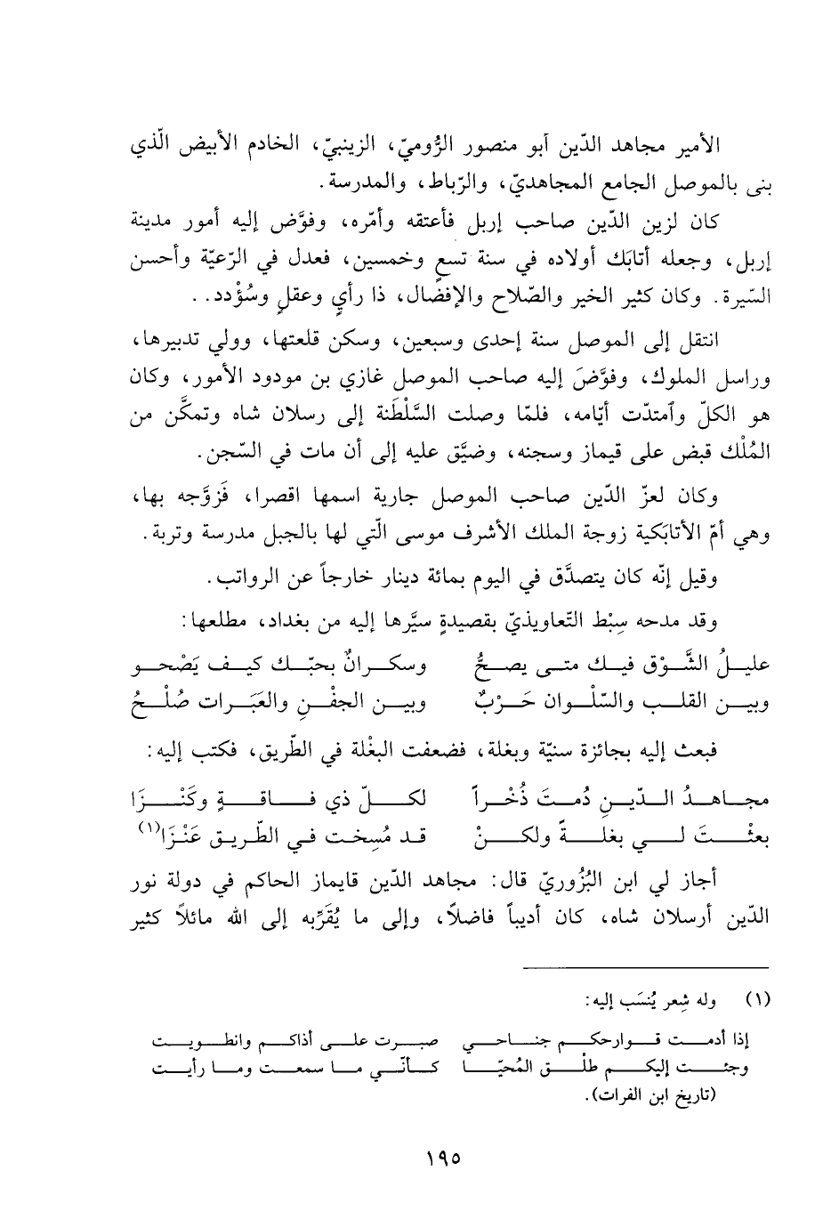 أجاز لي ابن البُزُوريّ قال: مجاهد الدّين قايماز الحاكم فِي دولة نور الدّين أرسلان شاه، كان أديبا فاضلا، وإلى ما يقرّبه إلى الله مائلا كثير