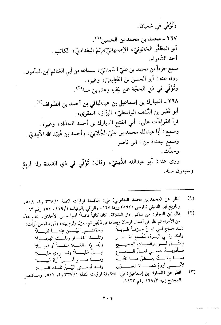[1] انظر عن (محمد بن محمد الخاتوني) في: التكملة لوفيات النقلة 1/ 338 رقم 508، وتاريخ ابن الدبيثي (باريس 5921) ورقة 125، والوافي بالوفيات 1/ 419، 150 رقم 63.