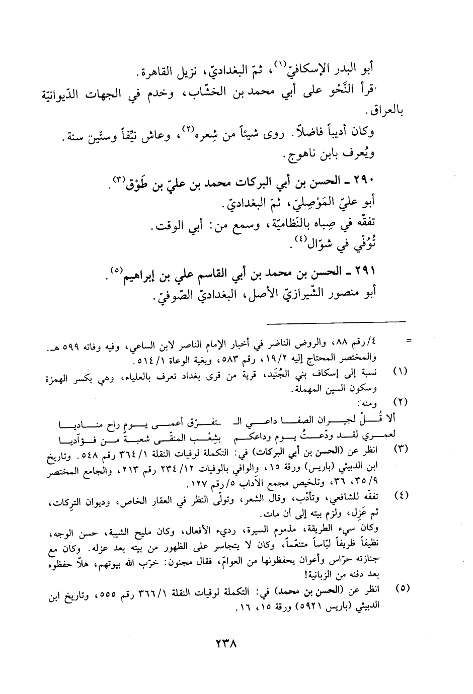 [5] انظر عن (الحسن بن محمد) في: التكملة لوفيات النقلة 1/ 366 رقم 555، وتاريخ ابن الدبيثي (باريس 5921) ورقة 15، 16.