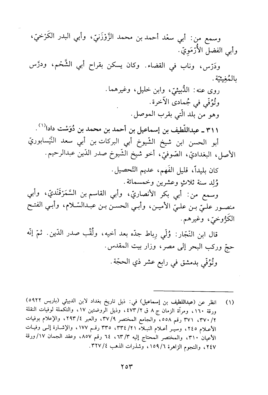 311- عَبْد اللّطيف بْن إِسْمَاعِيل بْن أَحْمَد بْن مُحَمَّد بْن دُوَسْت دادا [1] .