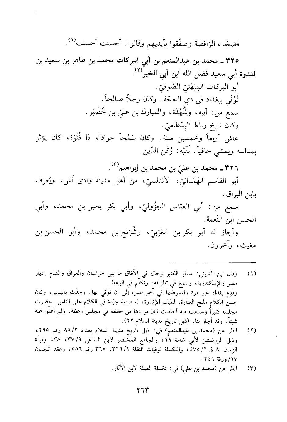 325- مُحَمَّد بْن عَبْد المنعم بْن أَبِي البركات مُحَمَّد بْن طاهر بْن سَعِيد بْن القدوة أَبِي سَعِيد فضل اللَّه ابن أَبِي الخير [2] .