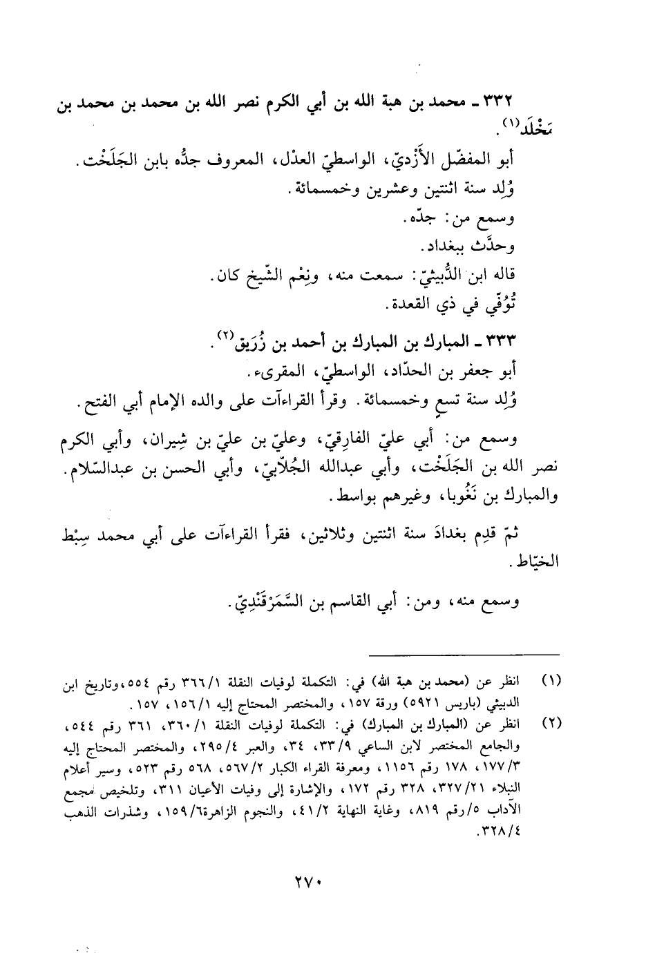 332- مُحَمَّد بْن هبة اللَّه بْن أَبِي الكرم نصر اللَّه بْن مُحَمَّد بْن مُحَمَّد بْن مَخْلَد [1] .