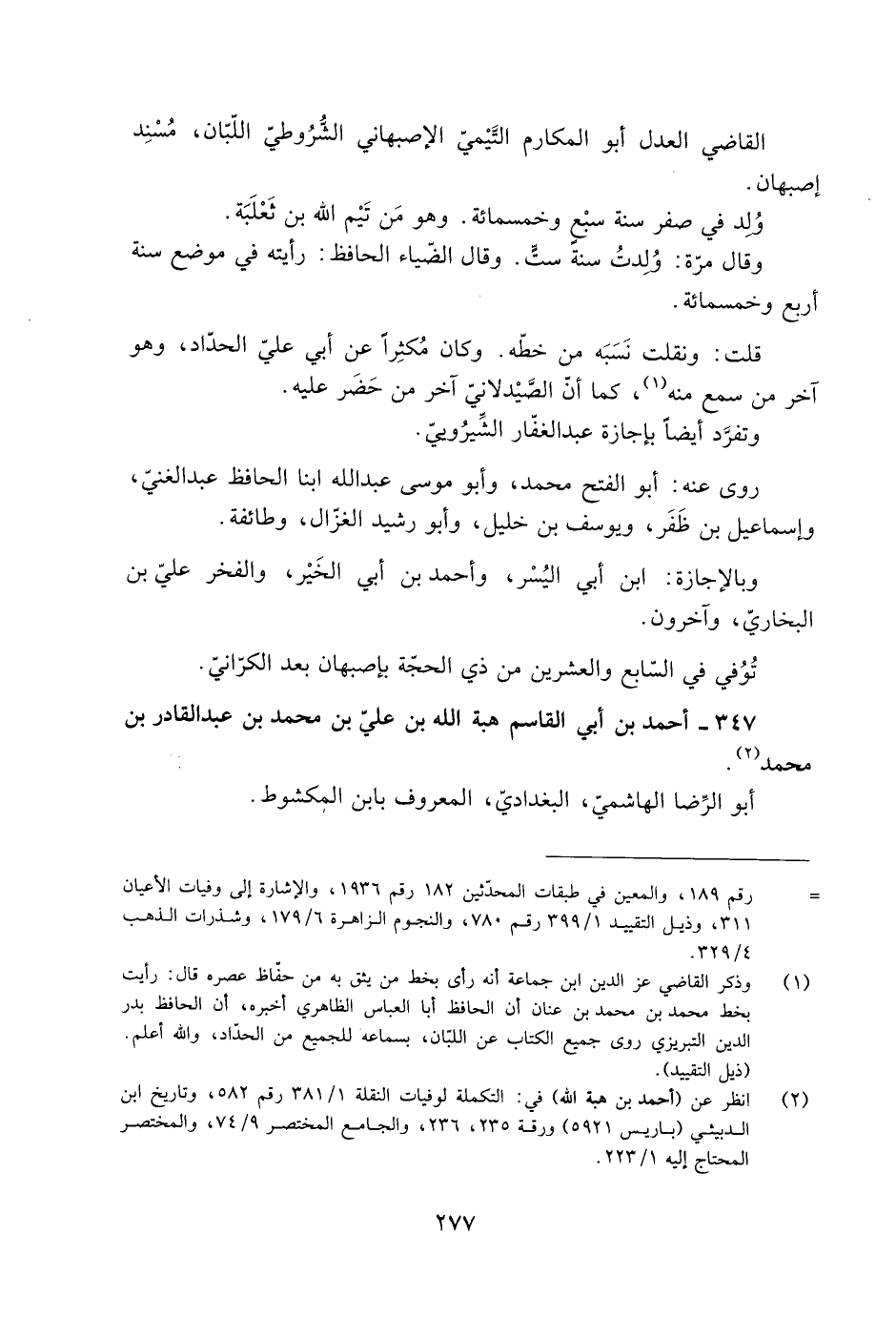 347- أحمد بْن أَبِي القاسم هبة اللَّه بْن عَلِيّ بْن مُحَمَّد بْن عَبْد القادر بْن مُحَمَّد [2] .