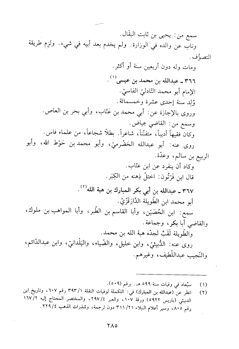 [2] انظر عن (عبد الله بن المبارك) في: التكملة لوفيات النقلة 1/ 393 رقم 607، وتاريخ ابن الدبيثي (باريس 5922) ورقة 107، والعبر 4/ 297، والمختصر المحتاج إليه 2/ 167 رقم 805، وسير أعلام النبلاء 21/ 311 دون ترجمة، وشذرات الذهب 4/ 229.